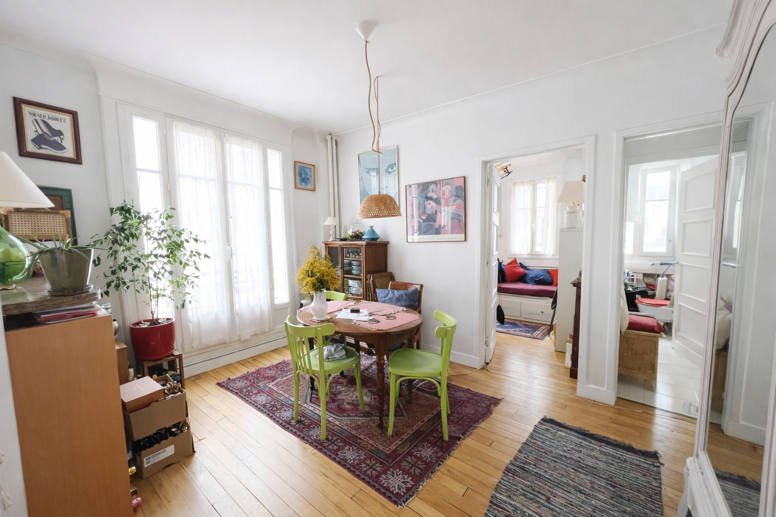 Boulogne entre le centre des Passages et le 16ème arrondissement de Paris, dans une résidence des années 30, au 3 ème étage avec ascenseur, bel appartement d'angle de 50,22 m2 comprenant une entrée, un salon avec cuisine ouverte, 2 chambres (possibilité d'agrandir le salon) dont une avec un balcon, une salle de bains et un WC indépendant. Une cave en sous sol complète le bien.L'immeuble vient d'être ravalé et la chaudière collective a été changée il y a environ 2 ans.L'appartement n'a aucune perte de place, dispose d'un parquet ancien et de double vitrage.Gardienne dans l'immeuble